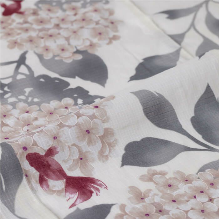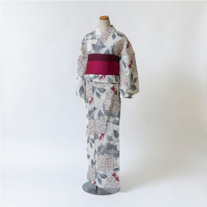 他の画像を見る 送料無料 浴衣は日本の夏を伝統的に彩る最高のファッションです ゆかた 花古今 紫陽花に金魚 (クリーム) 綿 仕立て上がり 日本製 ¥ 42,900 税込 詳細を見る お気に入りに登録する (0)