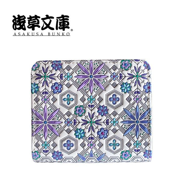 白革に重ねる彩色の芸術品 ギフトにもオススメです 二つ折りファスナー財布 花菱柄 【ブルー】 サイフ 女性用 浅草文庫