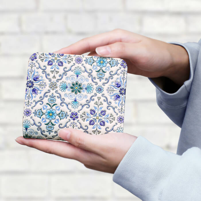 二つ折りファスナー財布/オリエント・ブルー