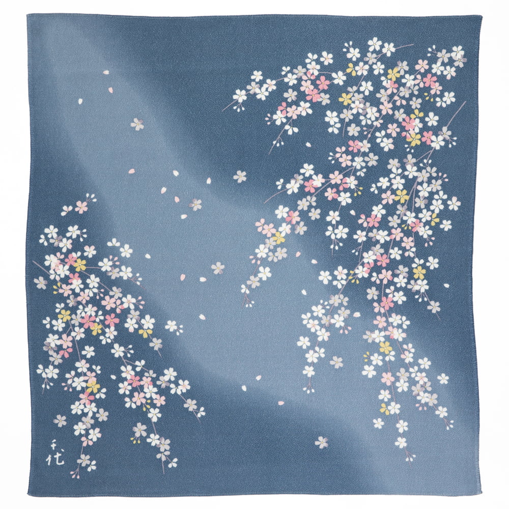 桜は幸福の花 宇野千代ブランドのレーヨン風呂敷 宇野千代レーヨン風呂敷 ぼかし枝桜 【ブルーグレー】 68cm巾 レーヨン