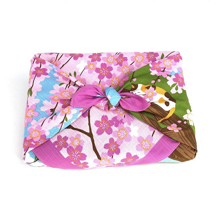 小風呂敷 三毛猫みけの夢日記 【みけのお花見・4月】 綿 50cm巾