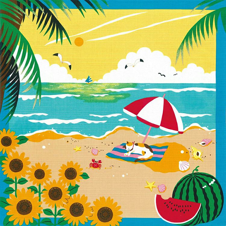 小風呂敷 三毛猫みけの夢日記 【みけの夏休み・8月】 綿 50cm巾