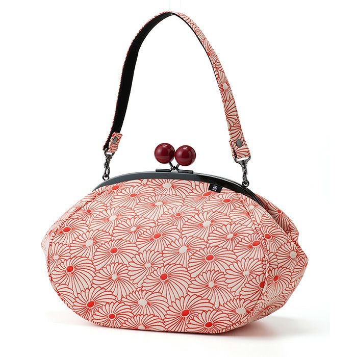 【ふくれえ織がま口】大きな赤玉がおしゃれな手持ちのがま口バッグ 菊柄 赤玉バッグ《 白×赤 》/ がまぐちハンドバッグ 日本製 京都 さんび