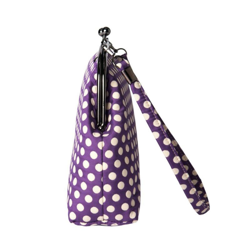 【小ぶりなふくれ織りがま口バッグ】 水玉柄 がま口バッグ《 紫 》 がまぐちハンドバッグ 日本製 京都 さんび