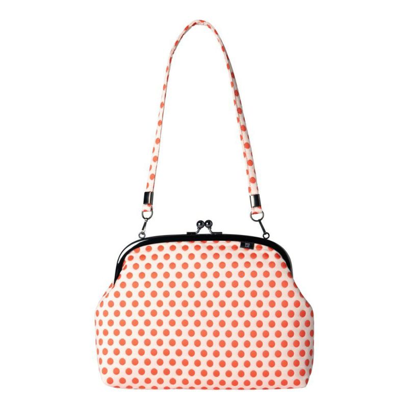 【小ぶりなふくれ織りがま口バッグ】 水玉柄 がま口バッグ《 白×赤 》 がまぐちハンドバッグ 日本製 京都 さんび