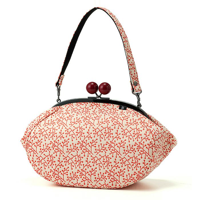 【ふくれえ織がま口】大きな赤玉がおしゃれな手持ちのがま口バッグ 南天柄 赤玉バッグ《 白×赤 》/ がまぐちハンドバッグ 日本製 京都 さんび