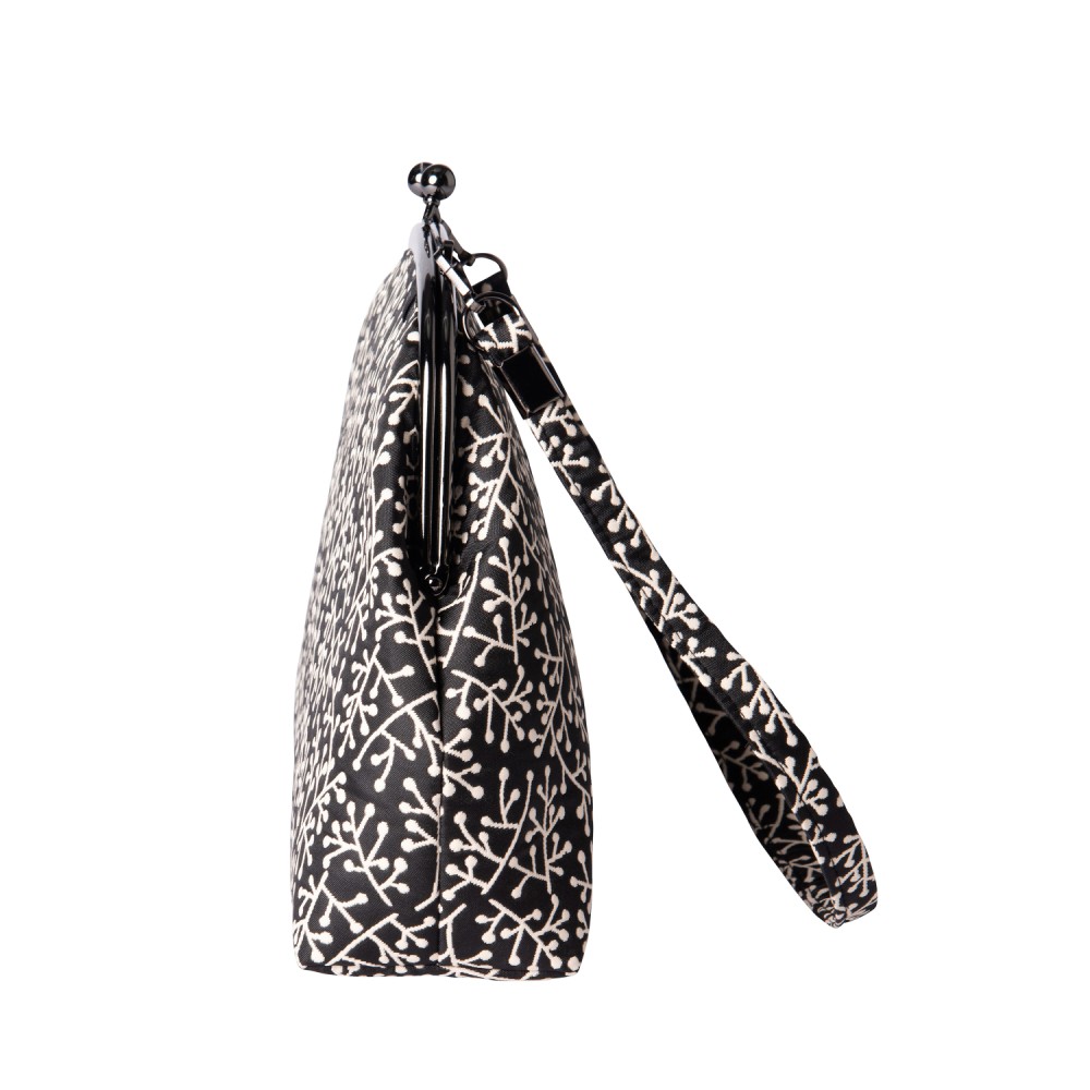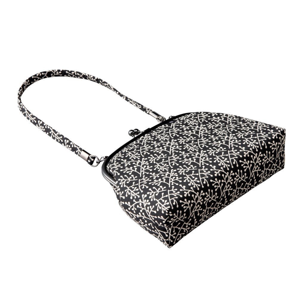 【小ぶりなふくれ織りがま口バッグ】 南天柄 がま口バッグ《 黒 》 がまぐちハンドバッグ 日本製 京都 さんび
