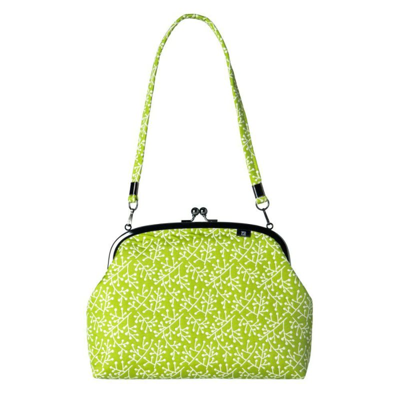 【小ぶりなふくれ織りがま口バッグ】 南天柄 がま口バッグ《 緑 》 がまぐちハンドバッグ 日本製 京都 さんび