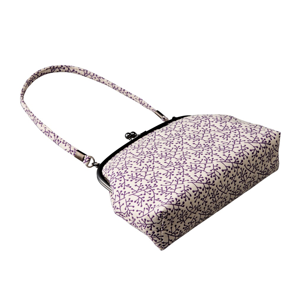 【小ぶりなふくれ織りがま口バッグ】 南天柄 がま口バッグ《 白×紫 》 がまぐちハンドバッグ 日本製 京都 さんび