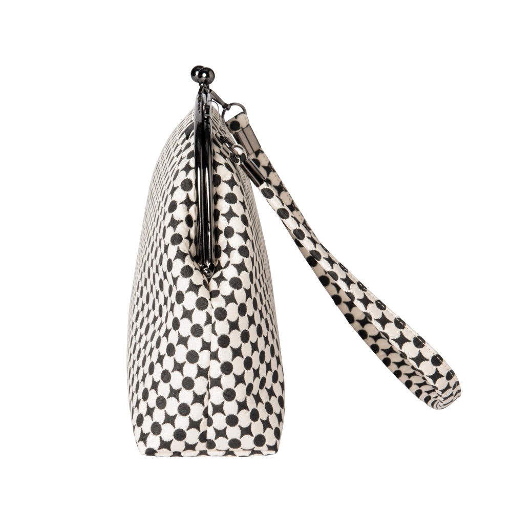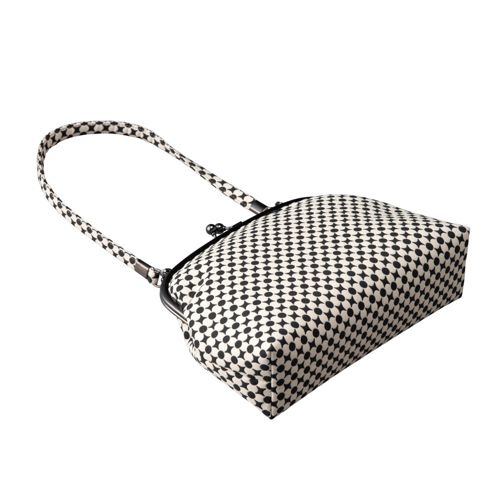 【小ぶりなふくれ織りがま口バッグ】 七宝柄 がま口バッグ《 白×黒 》 がまぐちハンドバッグ 日本製 京都 さんび