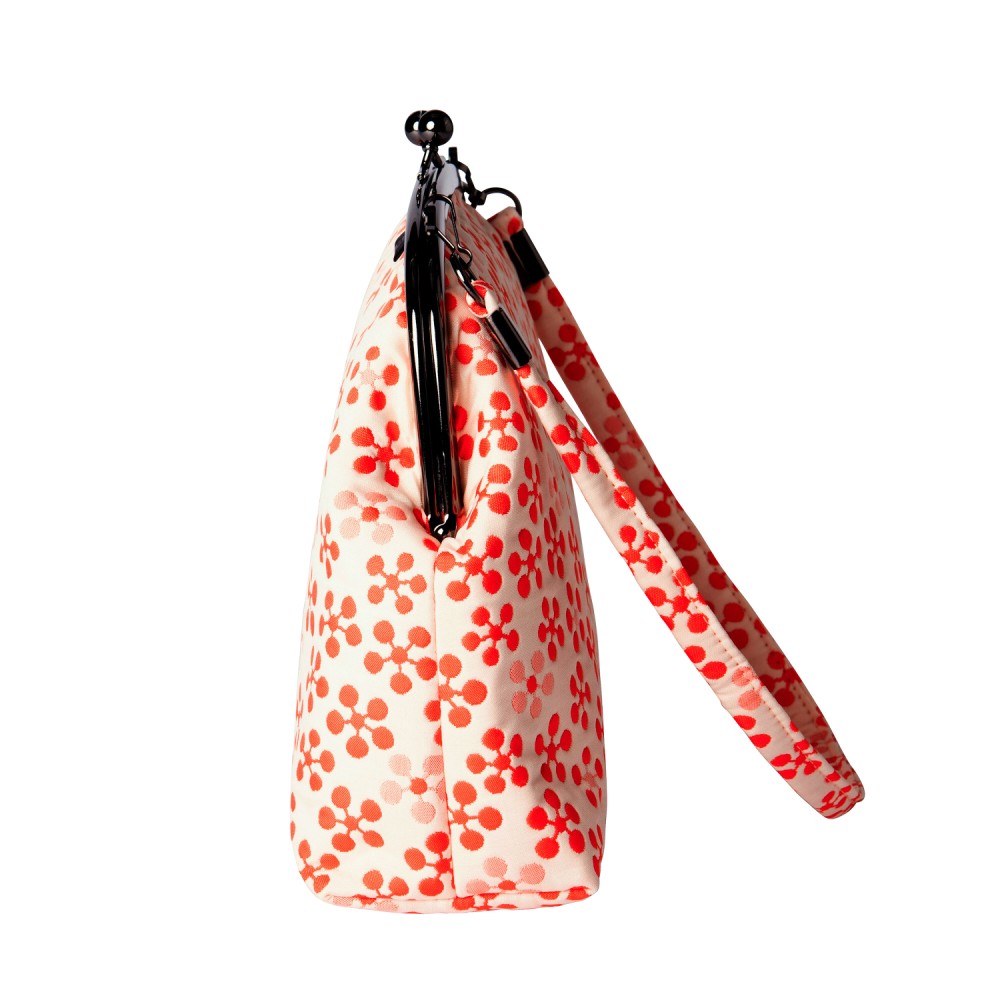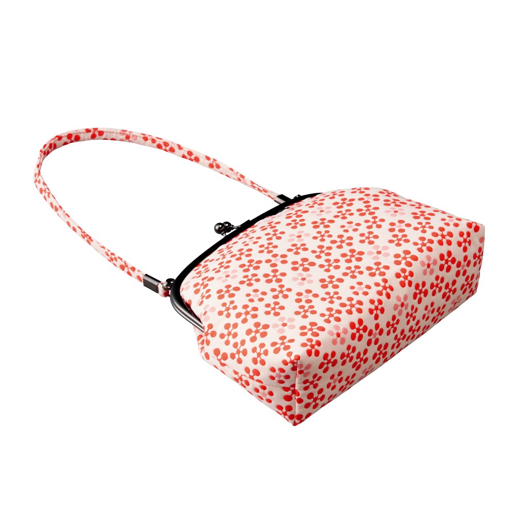 【小ぶりなふくれ織りがま口バッグ】 利休梅柄 がま口バッグ《 白×赤 》 がまぐちハンドバッグ 日本製 京都 さんび
