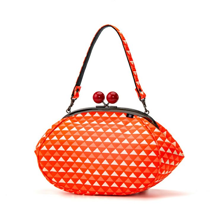 【ふくれえ織がま口】大きな赤玉がおしゃれな手持ちのがま口バッグ ウロコ柄 赤玉バッグ《 赤 》/ がまぐちハンドバッグ 日本製 京都 さんび