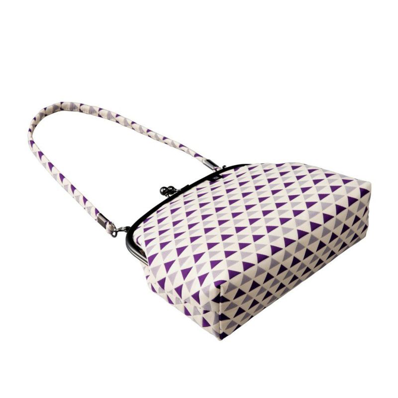 【小ぶりなふくれ織りがま口バッグ】 ウロコ柄 がま口バッグ《 白×紫 》 がまぐちハンドバッグ 日本製 京都 さんび