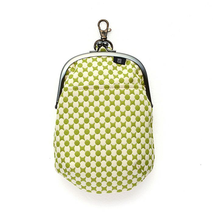 【ふくれ織がま口】手ぶらで出かけたい時にピッタリのチョークポーチ 七宝柄 4.0寸 チョークポーチ《 白×緑 》/ がまぐち ポシェット グリーン 日本製 京都 さんび