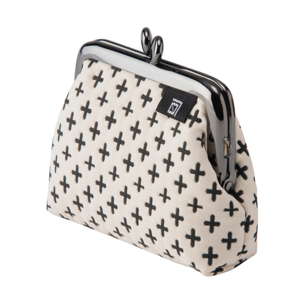 マチ付きで厚みがあり、小銭をたっぷり収納できます。口金が囲碁の碁石の形に似ていることから「碁石がま口」とも呼んでいます。