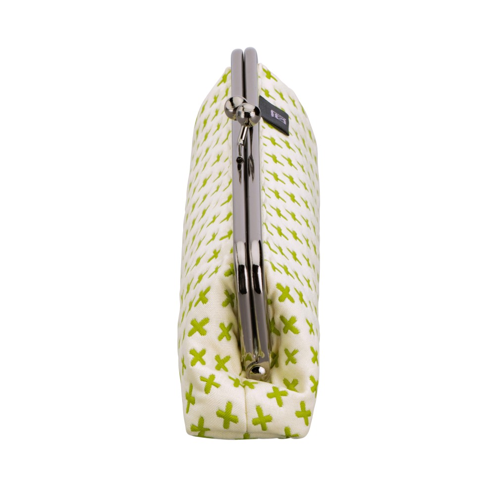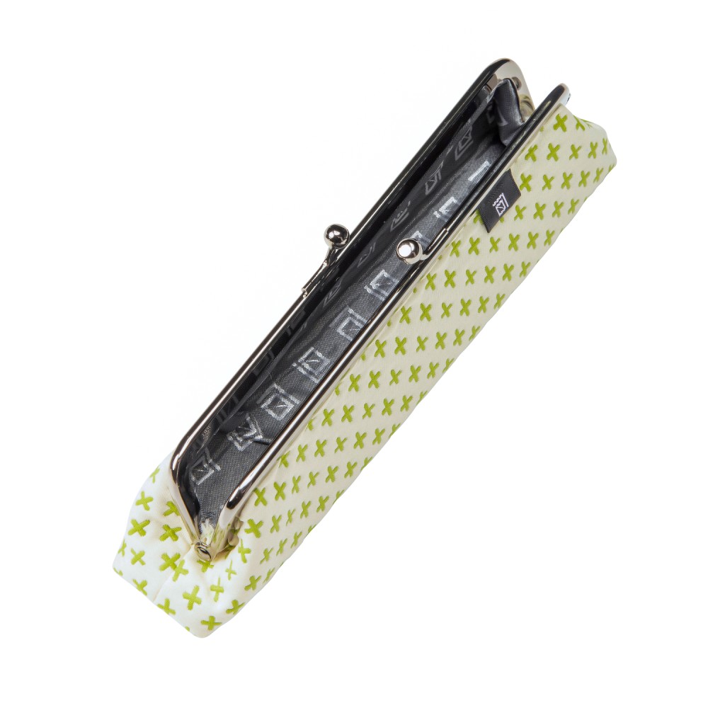 【ふくれ織りがま口】 刺子柄 ペンケース《 白×緑 》 がまぐち 日本製 京都 さんび