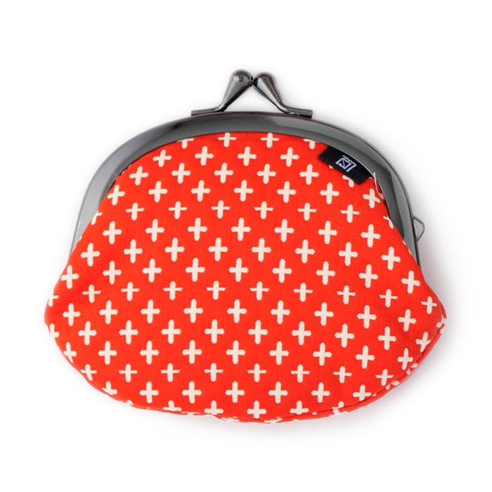 さんび堂では、ふくれ織り生地によく合う、十字の刺子柄を使ってがま口をお作りました。 -