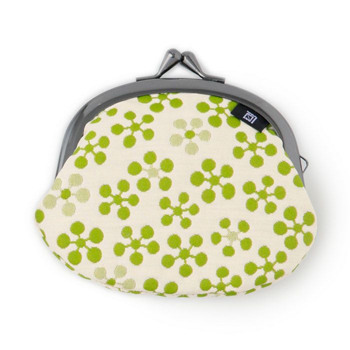 こちらのがま口は、ふっくらとした立体感のあるふくれ織り生地で仕立てました。ポコポコとした緩やかな凹凸は、ほっこりと可愛らしく、なごみます。京都らしい和の文様で、お土産にも最適です。裏地は、グレー色のポリエステルジャガード素材ですので、汚れが目立ちにくいです。