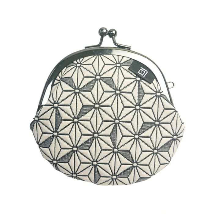 こちらのがま口は、ふっくらとした立体感のあるふくれ織り生地で仕立てました。ポコポコとした緩やかな凹凸は、ほっこりと可愛らしく、なごみます。京都らしい和の文様で、お土産にも最適です。裏地は、グレー色のポリエステルジャガード素材ですので、汚れが目立ちにくいです。