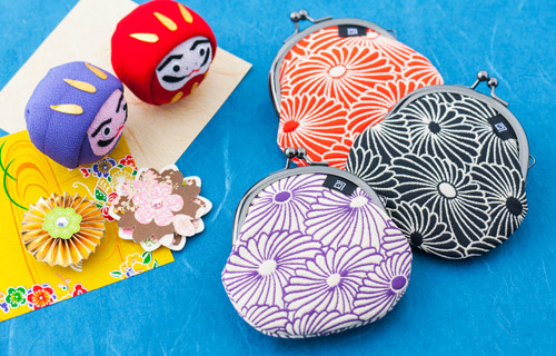 七宝・利休梅・刺子・水玉・南天・菊・麻の葉の6柄×8色展開。小銭入れ・ポーチ・眼鏡ケースなど種類も豊富です。