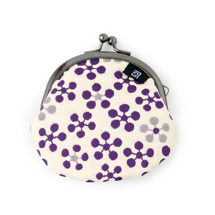 こちらのがま口は、ふっくらとした立体感のあるふくれ織り生地で仕立てました。ポコポコとした緩やかな凹凸は、ほっこりと可愛らしく、なごみます。京都らしい和の文様で、お土産にも最適です。裏地は、グレー色のポリエステルジャガード素材ですので、汚れが目立ちにくいです。