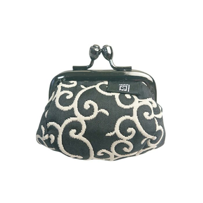 【ふくれ織りがま口】小さくて、コロンと可愛い丸い俵型 唐草柄 1.8寸ミニがま小銭入れ《 黒 》/ がまぐち コインケース アクセサリーケース 携帯用 ブラック