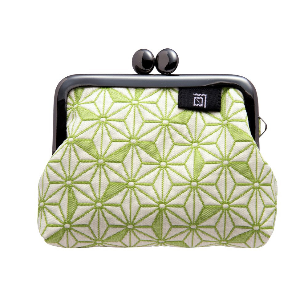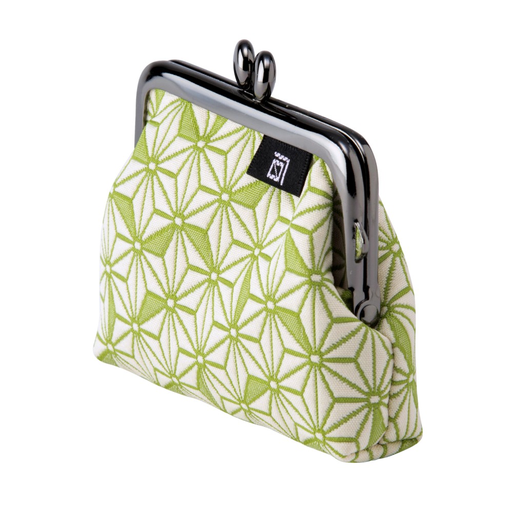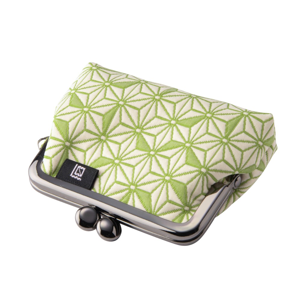 【ふくれ織りがま口】 麻の葉柄 2.5寸 角型小銭入れ《 白×緑 》 がまぐち 日本製 京都 さんび