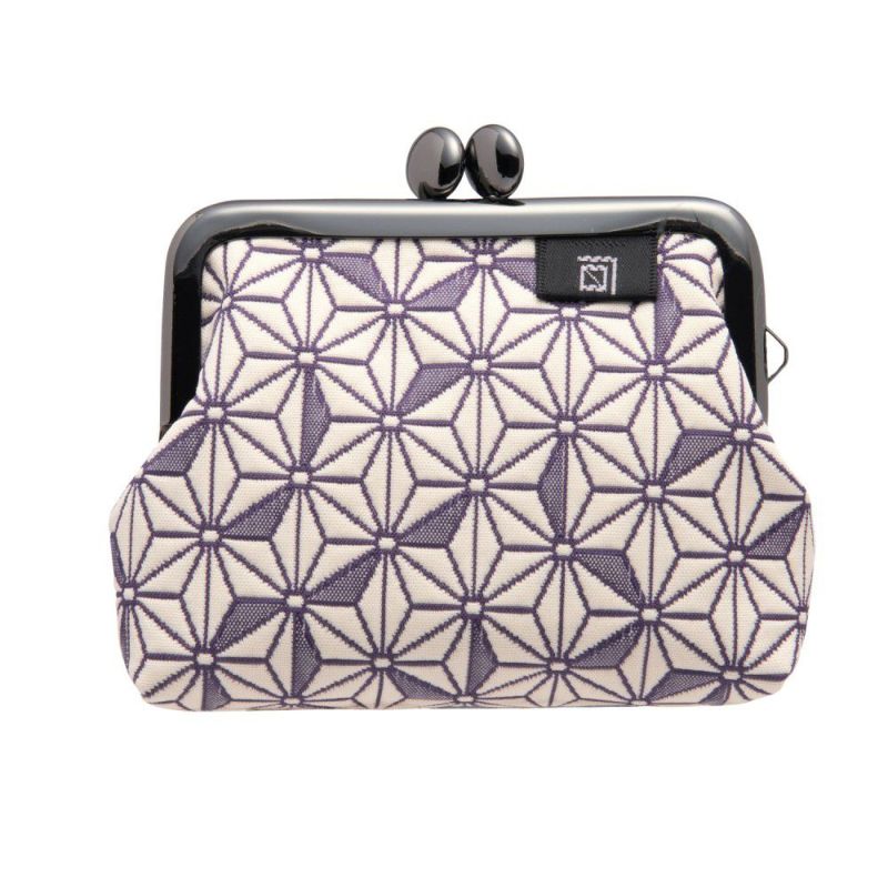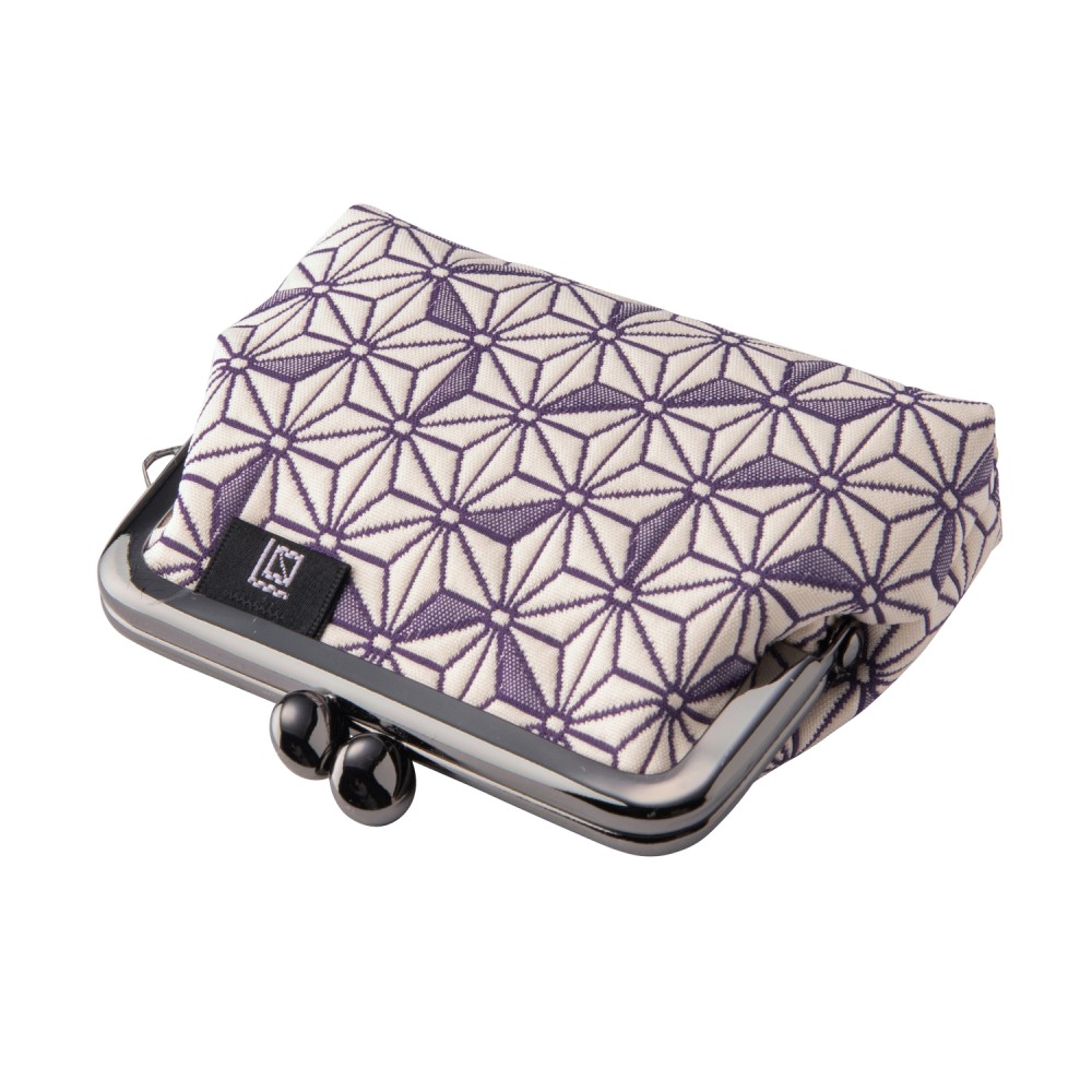 【ふくれ織りがま口】 麻の葉柄 2.5寸 角型小銭入れ《 白×紫 》 がまぐち 日本製 京都 さんび