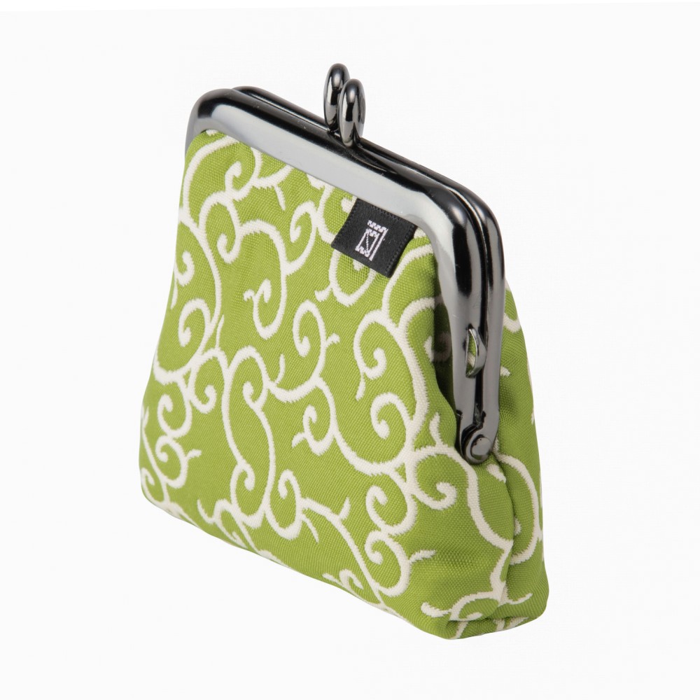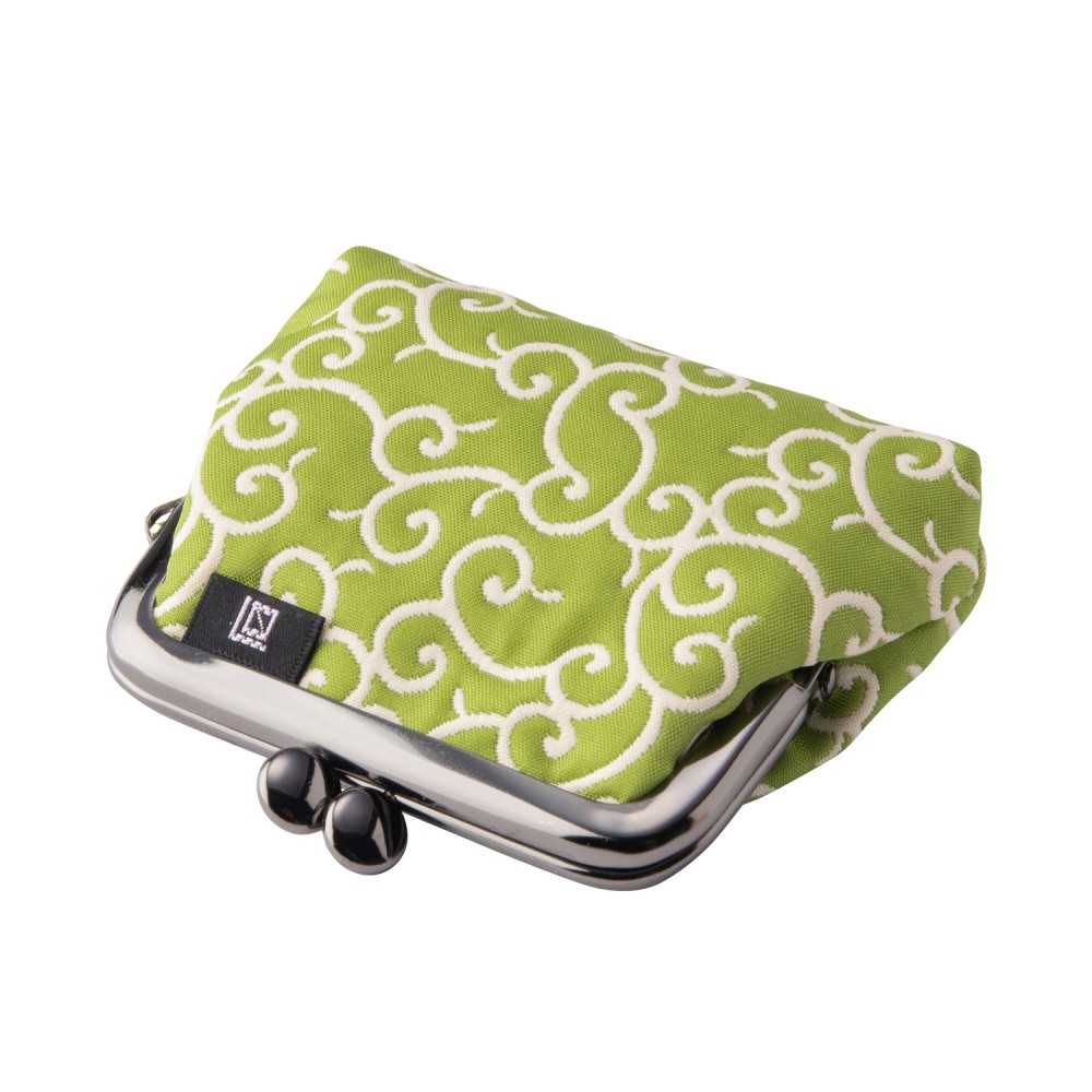 【ふくれ織りがま口】 唐草柄 2.5寸 角型小銭入れ《 緑 》 がまぐち 日本製 京都 さんび