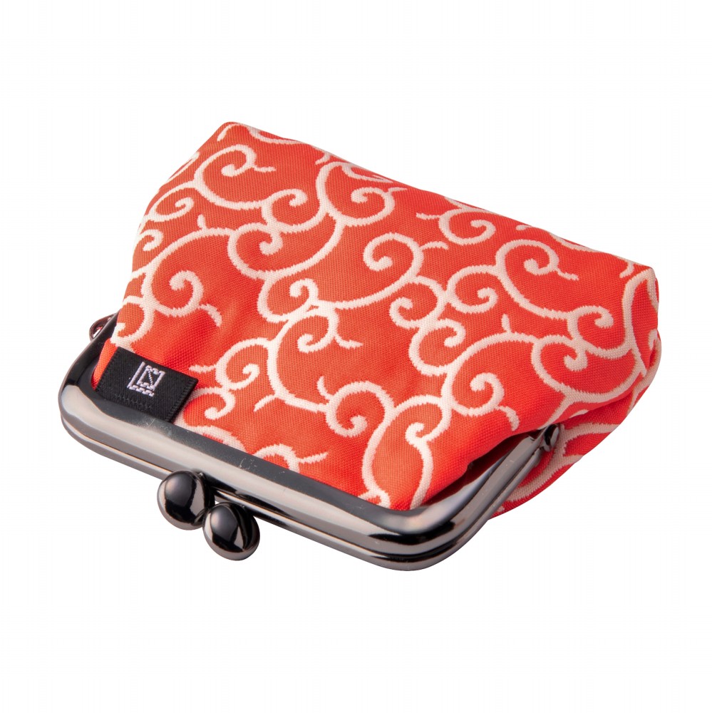 こちらのがま口は、ふっくらとした立体感のあるふくれ織り生地で仕立てました。ポコポコとした緩やかな凹凸は、ほっこりと可愛らしく、なごみます。京都らしい和の文様で、お土産にも最適です。裏地は、グレー色のポリエステルジャガード素材ですので、汚れが目立ちにくいです。