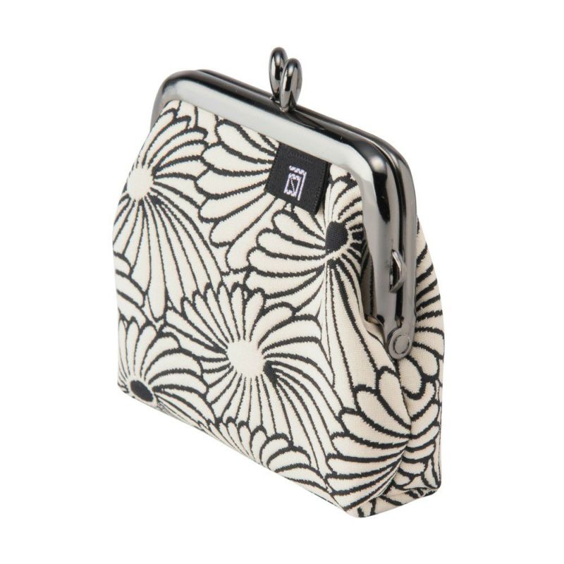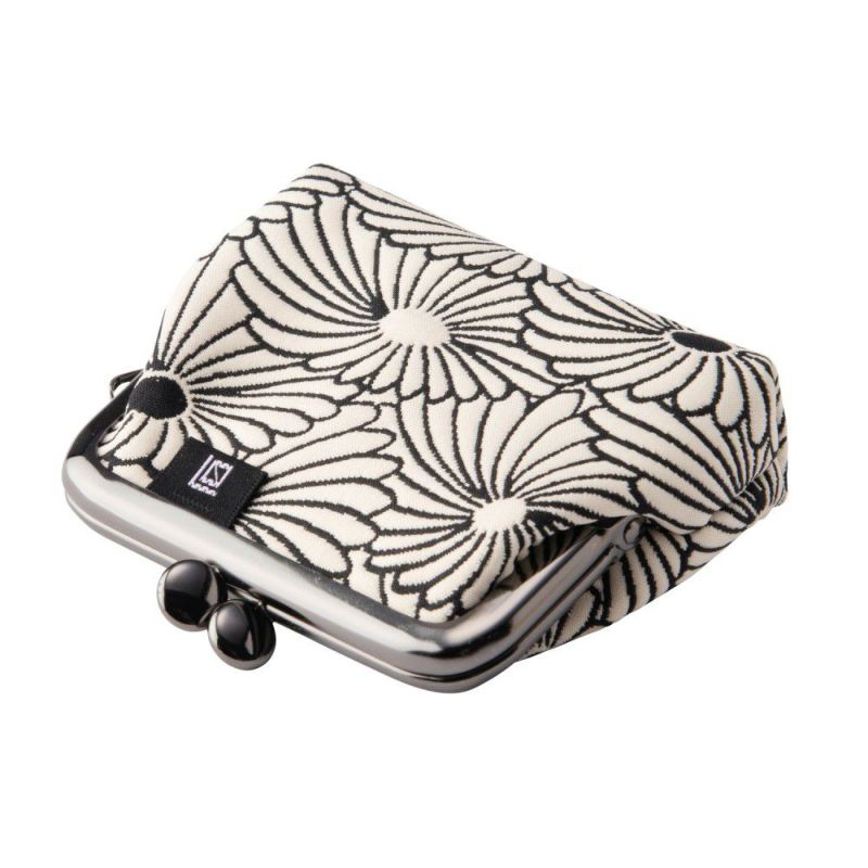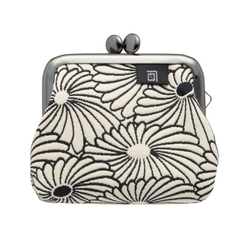 【ふくれ織りがま口】 菊柄 2.5寸 角型小銭入れ《 白×黒 》 がまぐち 日本製 京都 さんび