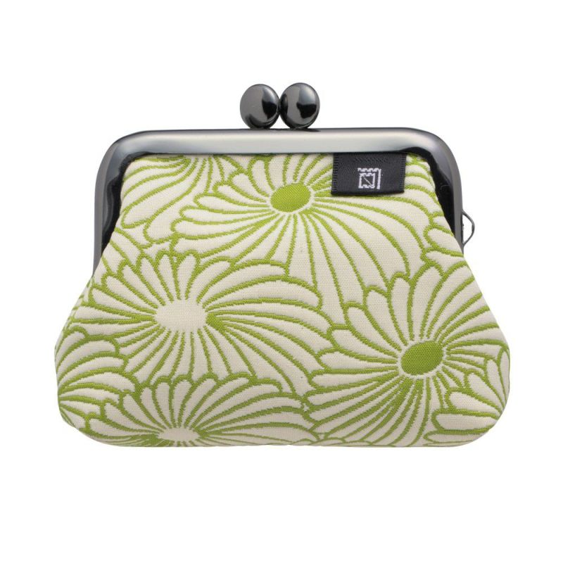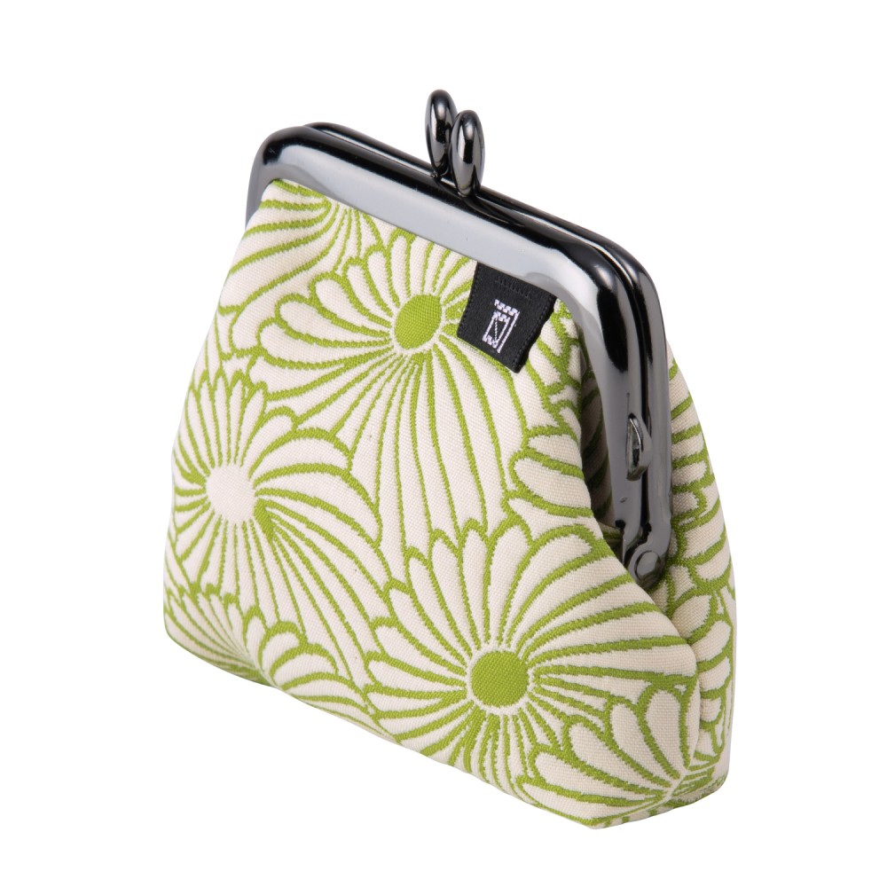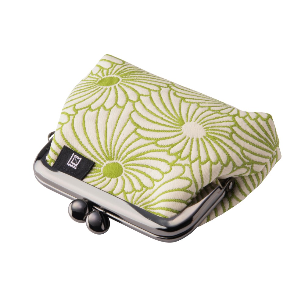 【ふくれ織りがま口】 菊柄 2.5寸 角型小銭入れ《 白×緑 》 がまぐち 日本製 京都 さんび