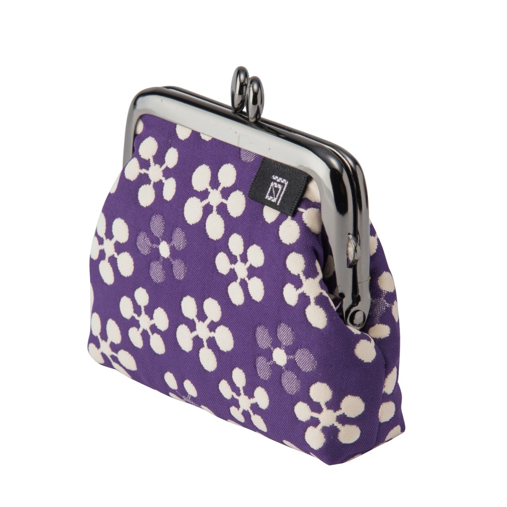 【ふくれ織りがま口】 利休梅柄 2.5寸 角型小銭入れ《 紫 》 がまぐち 日本製 京都 さんび