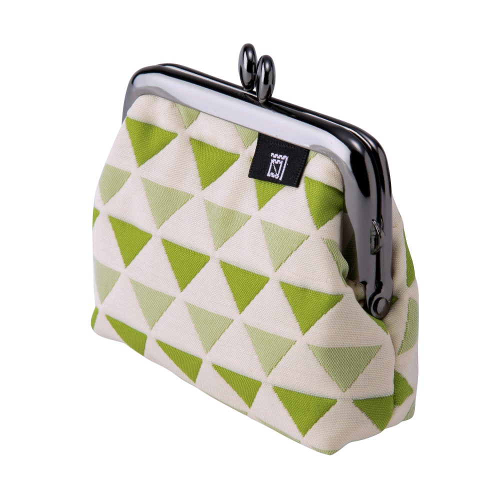【ふくれ織りがま口】 ウロコ柄 2.5寸 角型小銭入れ《 白×緑 》 がまぐち 日本製 京都 さんび