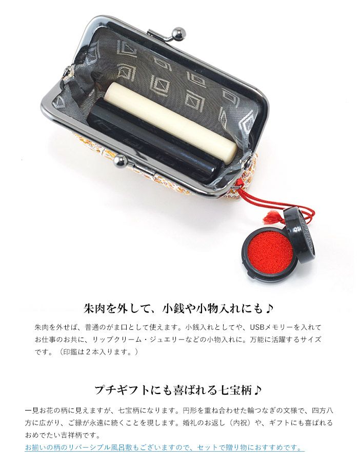他の画像を見る メール便対応 【ふくれ織りがま口】取り外しの出来る朱肉付きでプチギフトにお薦め 七宝柄 朱肉付き印鑑ケース《 白×赤 》/ がまぐち はんこ 日本製 京都 さんび ¥ 1,320 税込 詳細を見る お気に入りに登録する (0)