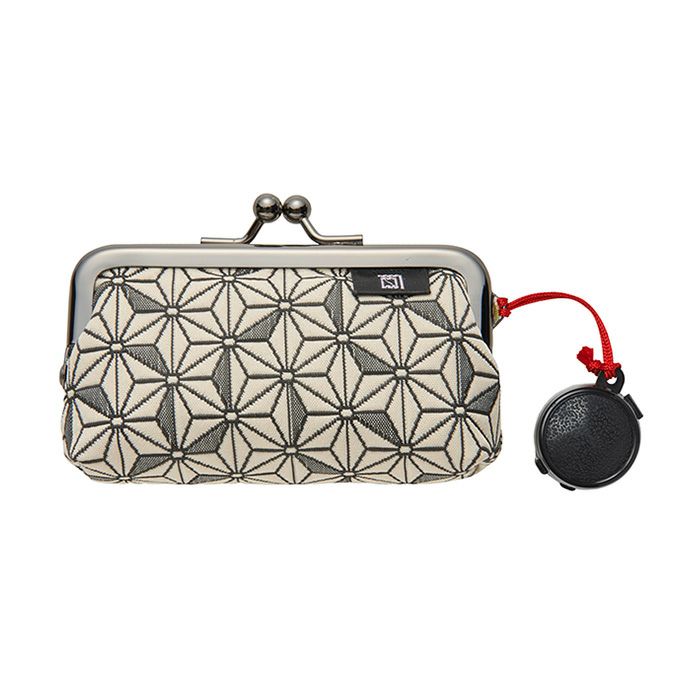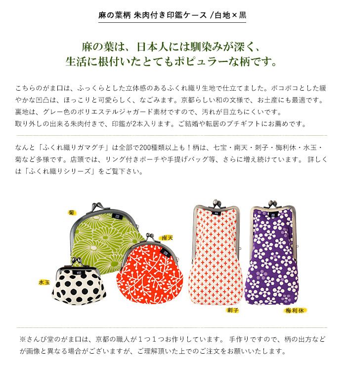 【ふくれ織りがま口】取り外しの出来る朱肉付きでプチギフトにお薦め 麻の葉柄 朱肉付き印鑑ケース《 白×黒 》/ がまぐち はんこ 日本製 京都 さんび