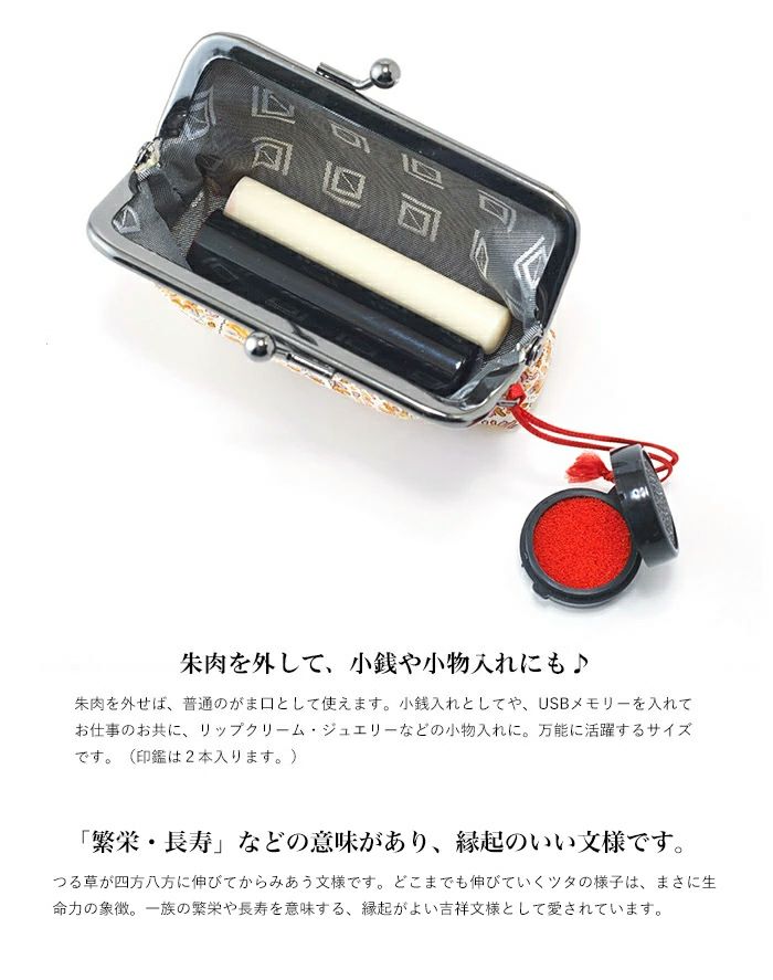 ●素 材:ポリエステル100%、口金 黒銀ニッケル 外付け朱肉