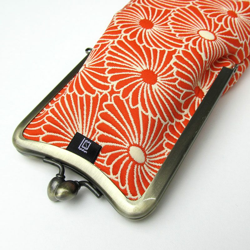 【ふくれ織りがま口】縦型でメガネはもちろん、厚みのあるサングラスも入ります 菊柄 眼鏡ケース《 赤 》/ メガネ サングラス がま口 日本製 京都 さんび
