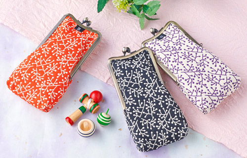 七宝・利休梅・刺子・水玉・南天・菊・麻の葉の6柄×8色展開。小銭入れ・ポーチ・眼鏡ケースなど種類も豊富です。