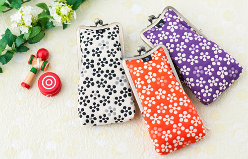 七宝・利休梅・刺子・水玉・南天・菊・麻の葉の6柄×8色展開。小銭入れ・ポーチ・眼鏡ケースなど種類も豊富です。