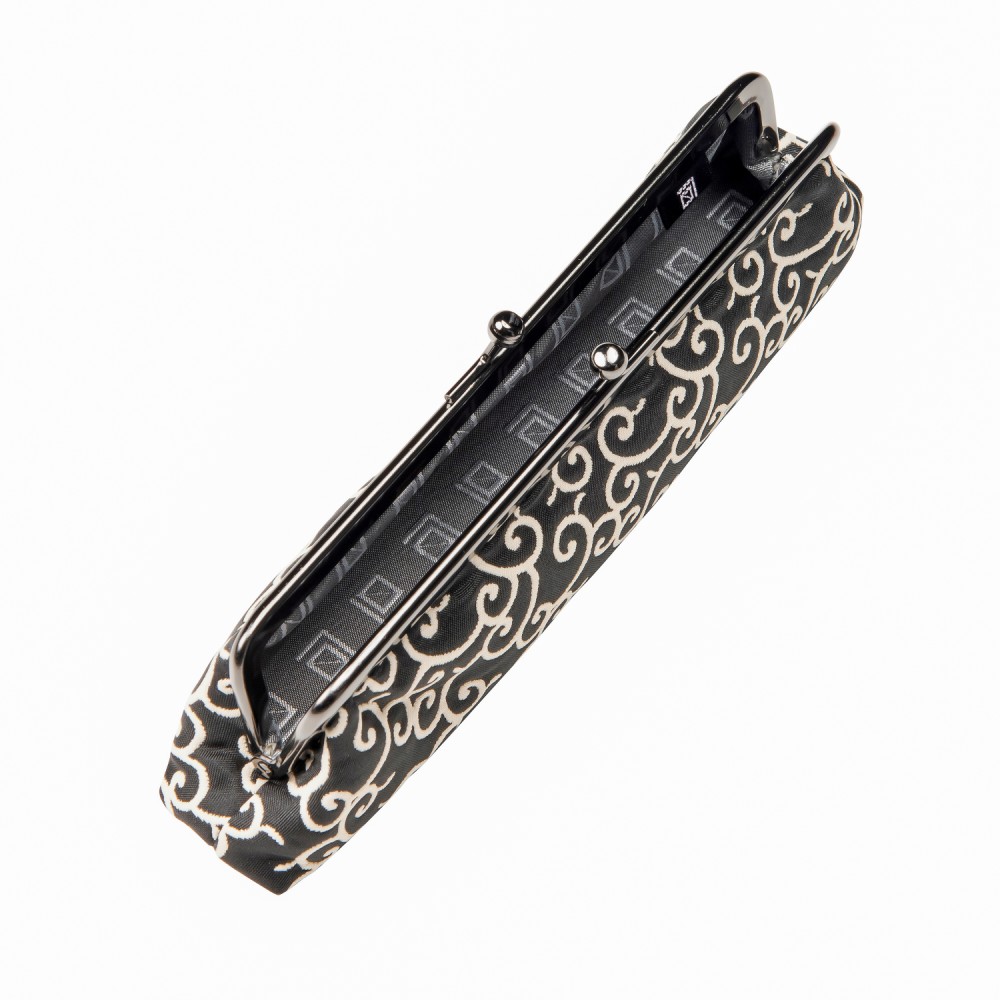 こちらのがま口は、ふっくらとした立体感のあるふくれ織り生地で仕立てました。ポコポコとした緩やかな凹凸は、ほっこりと可愛らしく、なごみます。京都らしい和の文様で、お土産にも最適です。裏地は、グレー色のポリエステルジャガード素材ですので、汚れが目立ちにくいです。