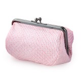 たっぷりと収納できる俵型♪ 帯揚げがま口 日焼け止め・ファンデーション・マスカラ・口紅などメイク道具一式が収まります。口が大きく開くので、中身が取り出しやすく、こぼれ落ちにくいです。表面は、汚れがつきにくい「テフロン加工」ですので、使い勝手も良いです。