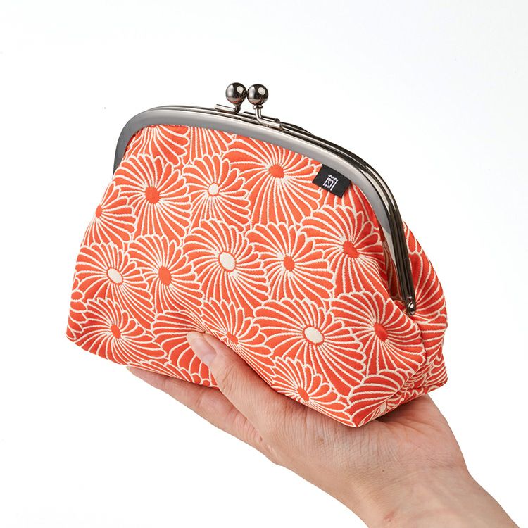 【ふくれ織りがま口】コスメポーチやミニバッグにもなる2way♪ 南天 リング付がま口ポーチ 5.5寸 / 赤 京都 さんび 日本製