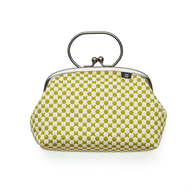 ふくれ織り 七宝 リング付がま口ポーチ / 白地×緑