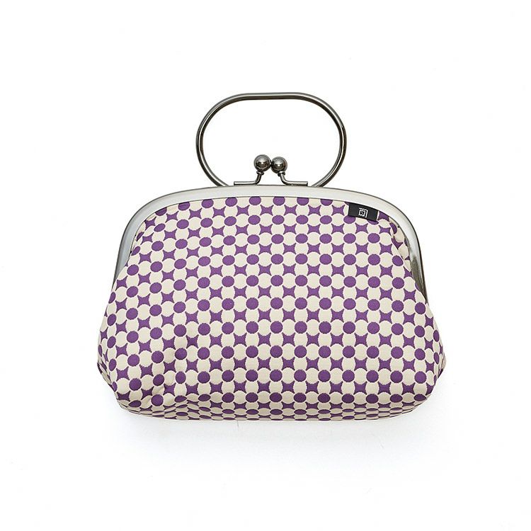 ふくれ織り 七宝 リング付がま口ポーチ / 白地×紫