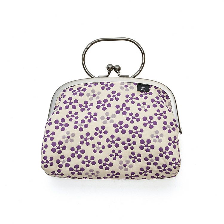 ふくれ織り 利休梅 リング付がま口ポーチ / 白地×紫