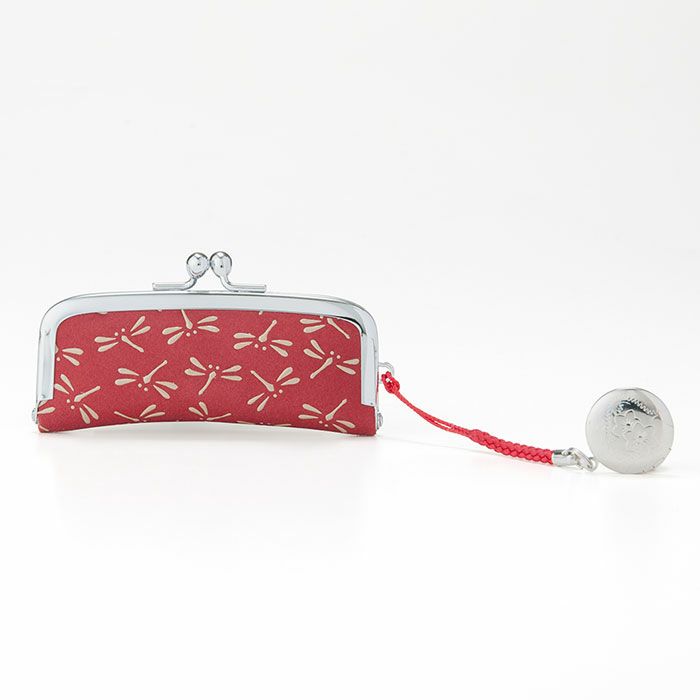 ギフトに人気 朱肉の根付(ストラップ)が付いた印鑑ケース 印伝 印傳屋 上原勇七本革 がま口印鑑ケース 朱肉付き 4303 赤地×白漆 とんぼ柄