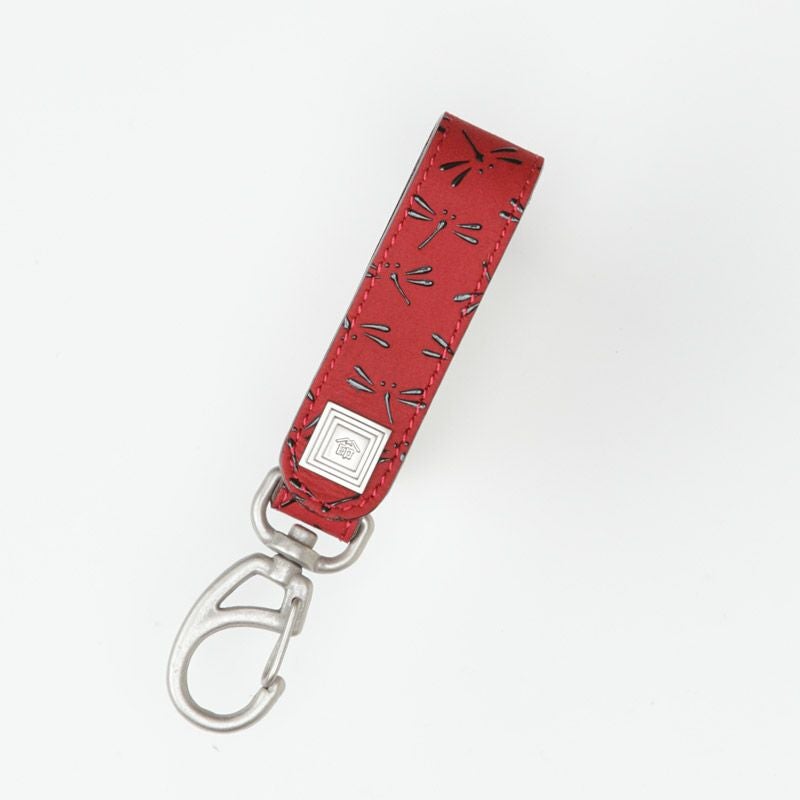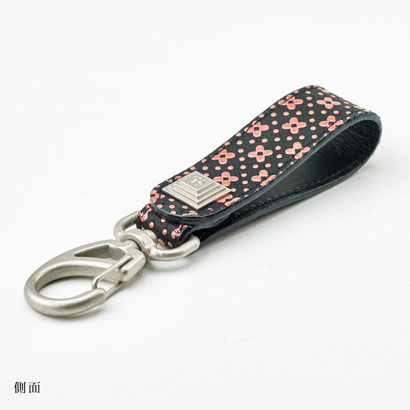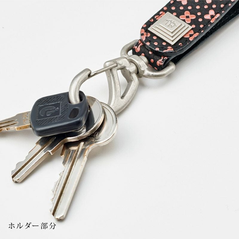 鍵の取り外しが楽ちんなキーホルダー。落ち着いたトーンの赤の鹿革地に、黒漆のツヤが映えて素敵です。上品で大人っぽい雰囲気ですので、母の日や敬老の日にも最適です。