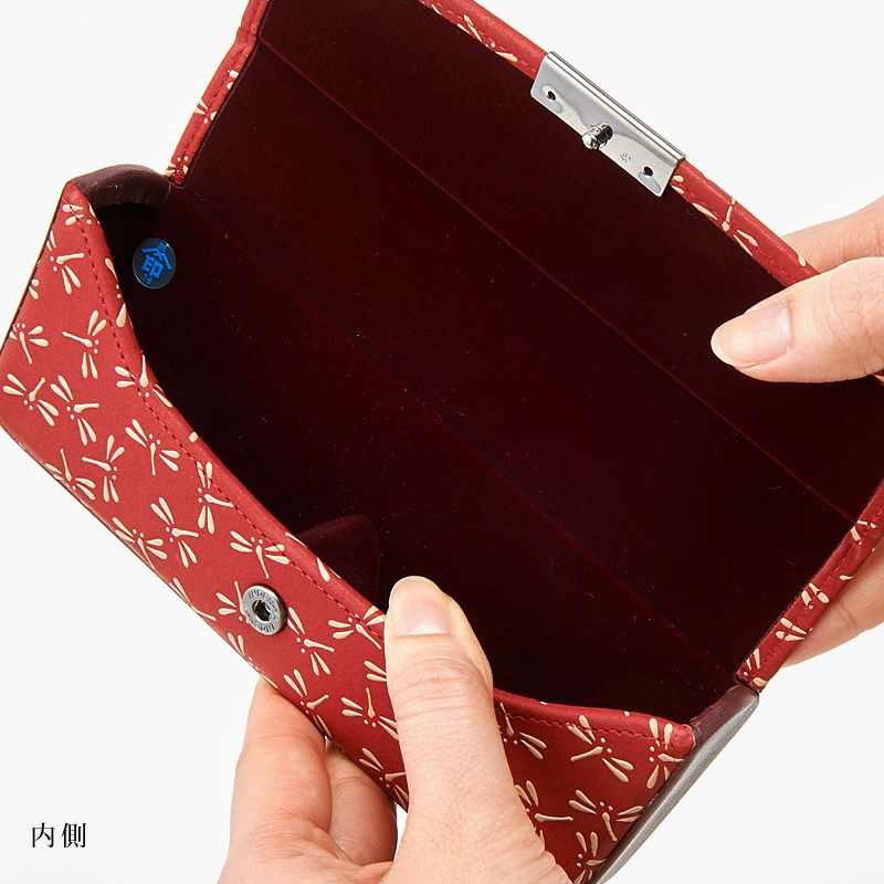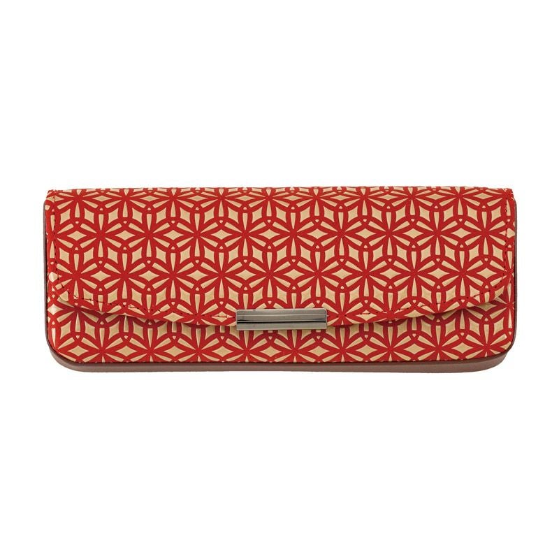 落ち着いたトーンの赤の鹿革地に、ベージュ色の漆柄が綺麗に映えます。さんび堂の別注でお作りした「麻の葉」の印伝。漆付け部分が多く、ツヤ感があり、モダンで力強いデザインとなっております。 高級感があるので母の日や敬老の日などのギフトにも最適です。