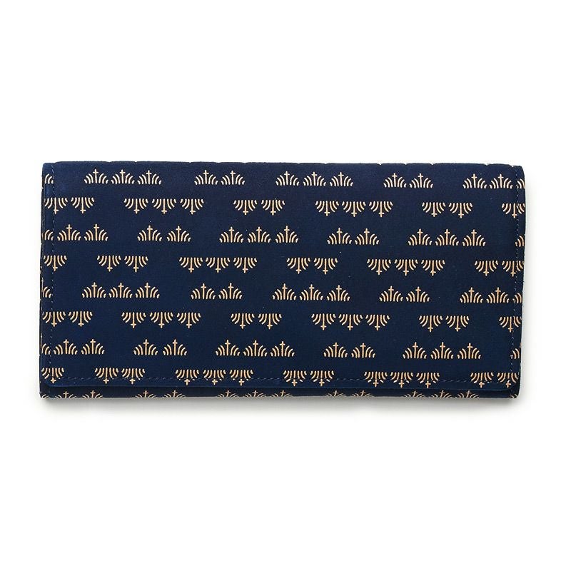 濃紺の鹿革地に、ベージュ色の漆のツヤが綺麗に映えて、柄も引き立っています。少し個性的にしたい、小物でコーディネートの印象を変えたい方は是非こちらをどうぞ。